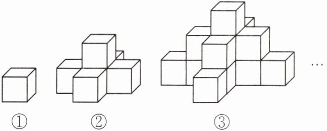 4. 图①是一个水平摆放的小正方体木块,图②、图③是由这样的小正方体木块叠放而成的,按照这样的规律继续叠放下去,图⑦中,小正方体木块的总数应是( )个。