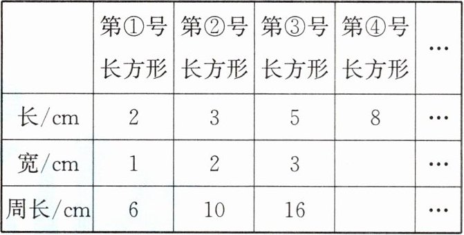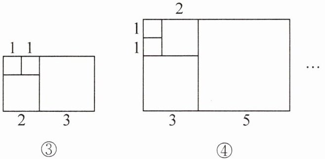 【探究】现在以这组数中的各个数作为正方形的边长画出正方形,再按如下图所示的方式依次拼成长方形。(单位:厘米)