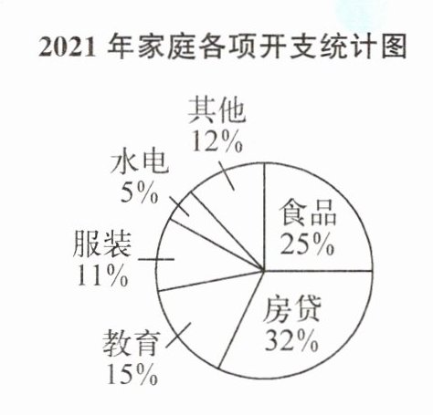 1. 2022年全国各地猪肉价格大幅上涨,小云家所在地区2022年3月的猪肉零售价达到了60元/千克,而上一年同期价格为20元/千克,猪肉价格的大幅上涨也导致了其他肉类价格的上涨,增加了人们食品的开支。如图所示为小云家2021年和2022年家庭各项开支的统计图。