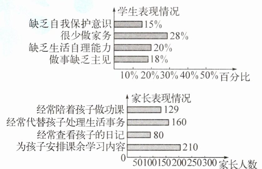 (1) 在被调查的300名学生中,有( )名学生缺乏生活自理能力。