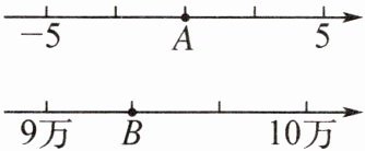 8. 如图,点 A 表示的数是( ),点 B 表示的数是( )万。