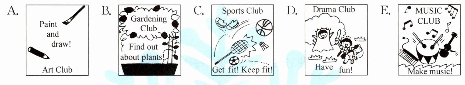 学校将开设一些社团俱乐部,请为这些社团的宣传海报选择合适的标语。