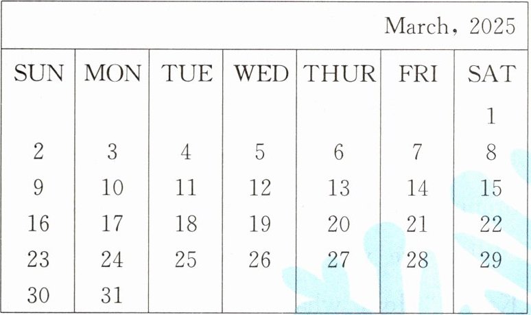 P.S.:Enclosed(附上的) is a calendar(日历)for March 2025.