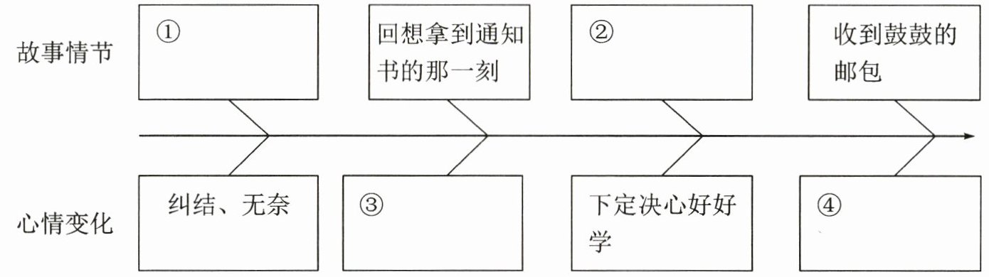 故事情节 ①______ 回想拿到通知书的那一刻 ②______ 收到鼓鼓的邮包