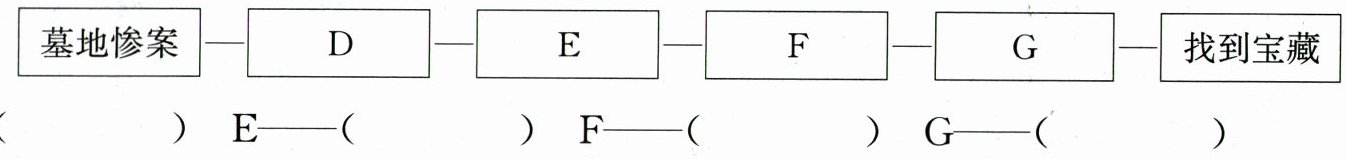 2. 小君:我梳理了这本小说的主要情节,空白处分别为①"指认凶手"、②"被困山洞"、③"当海盗去"、④"鬼屋历险",按照故事情节,DEFG 对应的内容分别是什么呢? (填序号)(2 分)