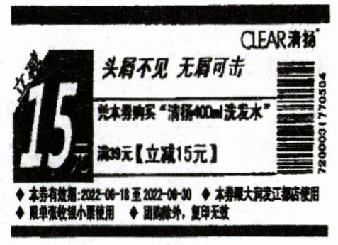 A.明明的妈妈凭此券的复印件去大润发江都店购买清扬 400 ml 洗发水时,可以立减 15 元。