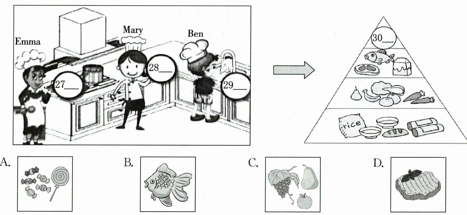 四、听录音,将图片放入合适的位置。(听两遍)(每小题1分,共4分)