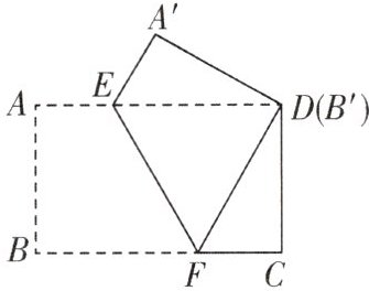 5.1 解析:由折叠的性质,可得$A'B'=AB$,$A'E=AE$。在$Rt\triangle A'DE$中,有$A'D^{2}+A'E^{2}=DE^{2}$。又$AE + DE = AD$,可设$DE = x cm$,则$A'E = AD - DE = (5 - x)cm$,列方程,得$3^{2}+(5 - x)^{2}=x^{2}$,解得$x = 3.4$,即$DE = 3.4cm$,所以$S_{\triangle DEF}=\frac{1}{2}DE\cdot AB=\frac{1}{2}×3.4×3 = 5.1(cm^{2})$。