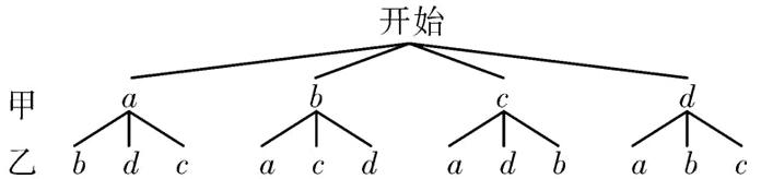 解:设甲、乙、丙、丁4人的礼物分别记为a,b,c,d,根据题意画树状图如下:
