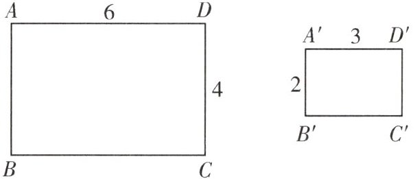 $\therefore \frac{AB}{A'B'} = \frac{DC}{D'C'} = \frac{4}{2} = \frac{2}{1}$,$\frac{AD}{A'D'} = \frac{BC}{B'C'} = \frac{6}{3} = \frac{2}{1}$,