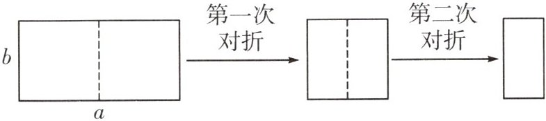9. 如图,取一张长为 $a$,宽为 $b$ 的矩形纸片,将它对折两次后得到一张小矩形纸片,若要使小矩形与原矩形相似,则原矩形纸片的边 $a$,$b$ 应满足的条件是(