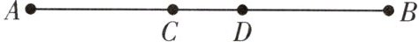 2.如图,已知点C,D是线段AB的两个黄金分割点,若线段AB的长为10cm,求线段CD的长度。