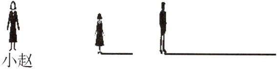 按照光沿直线传播原理,连接图中两人头部顶端与各自影子顶端并延长,交点为路灯灯泡位置;再连接该位置与小赵头部顶端延长交地面,小赵脚部与交点连线即为影子(具体图形需依此绘制)