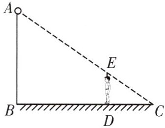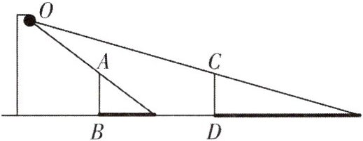 2. 如图,已知路灯离地面的高度AB为4.8 m,身高为1.6 m的小明站在D处的影长为2 m,求此时小明离路灯杆AB的距离BD。