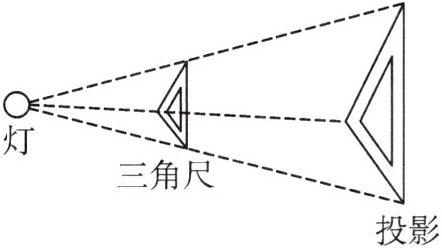 B. 如图,位似图形是由三角尺在灯光照射下的中心投影形成,相似比为$2:5$,且三角尺的一边长为4 cm,则投影三角尺的对应边长为