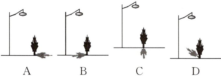 11. 下列四个选项中,图形中的灯光与物体的影子最合理的是 (