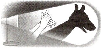 15. 手影游戏利用的物理原理是:光是沿直线传播的。图中小狗手影就是我们小时候常玩的游戏,在一次游戏中,小明距离墙壁$1m$,爸爸拿着的光源与小明的距离为$2m$,在小明不动的情况下,要使小狗手影的高度增加一倍,则光源与小明的距离应 (