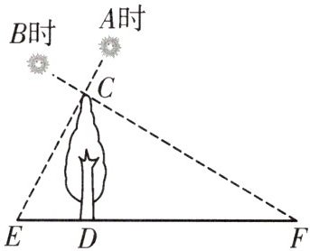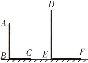 12. 如图,$AB$和$DE$是直立在地面上的两根立柱,$AB=6m$,$AB$在阳光下的影长$BC=3m$,在同一时刻阳光下$DE$的影长$EF=4m$,则$DE$的长为 (