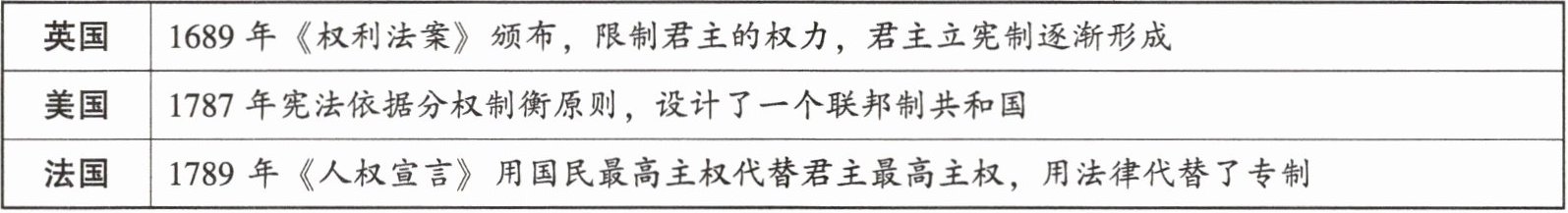 9. (2024·山东威海)下列表格内容反映出在资本主义制度确立过程中,英、美、法共同致力于(