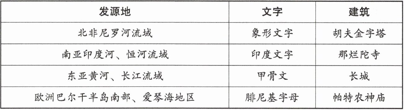 1. (2024·深圳南山校级期中)下表为世界古代文明的概况。由此可知:世界古代文明(