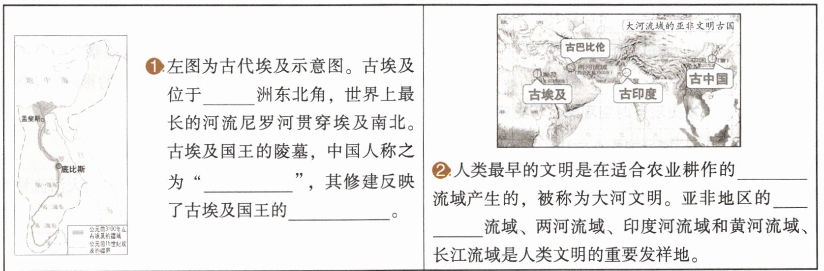 [历史解释·史料实证]尼罗河的定期泛滥,留下适宜作物生长的沃土的同时还带来丰富的水源,在此基础上古埃及原始农业文明诞生,并不断发展……
