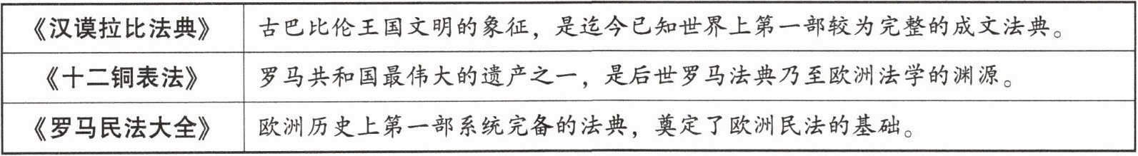 )A. 《汉谟拉比法典》《查士丁尼法典》