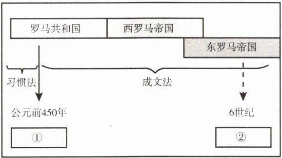 1. (2024·深圳适应性考试)下图是学生学习罗马法制发展过程时整理的学习笔记,①②处应为(