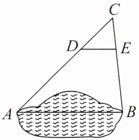 2. 如图,A,B两点间有一湖泊,无法直接测量两点间的距离,已知$CA=60m$,$CD=20m$,$DE=15m$,$DE// AB$,求AB的长.