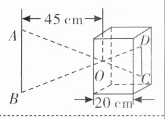 9. 【跨学科融合】如图是小孔成像原理的示意图,根据图中标注的尺寸,如果物体$AB$的高度为$36cm$,那么它在暗盒中所成的像$CD$的高度应为