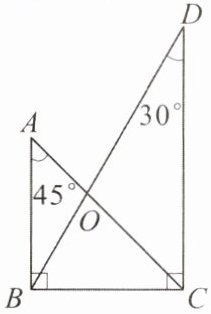 11. 如图,将一副三角板如图叠放,$BC=1$,则$\triangle AOB$与$\triangle COD$的面积比为
