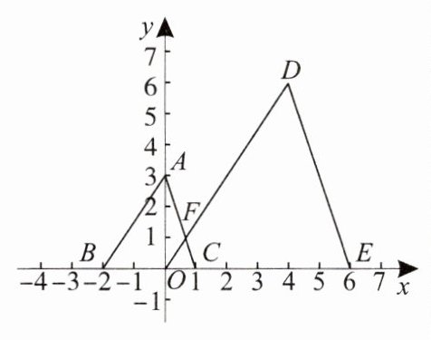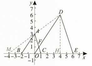 13. 【核心素养】如图,$\triangle ABC$与$\triangle DOE$是位似图形,$A(0,3)$,$B(-2,0)$,$C(1,0)$,$E(6,0)$,$\triangle ABC$与$\triangle DOE$的位似中心为点$M$。