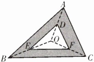 11. 【原创题】如图,$\triangle DEF$是由$\triangle ABC$经过位似变换得到的,点$O$是位似中心,$D$,$E$,$F$分别是$OA$,$OB$,$OC$的中点。若$\triangle DEF$与$\triangle ABC$所围的图形(阴影部分)的面积为$30cm^2$,则$\triangle DEF$的面积为____