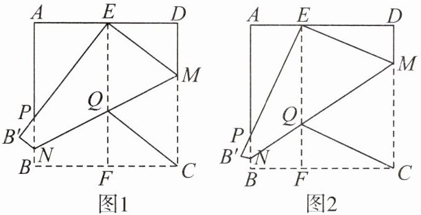 (1)在图 1 中,若 $ EF $ 与 $ MN $ 相交于点 $ Q $,连接 $ CQ $,求证:四边形 $ EQCM $ 是菱形;