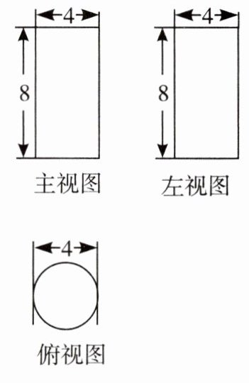 4. 如图是一个几何体的三视图,根据图中提供的数据(单位:cm),求这个几何体的体积和表面积。
