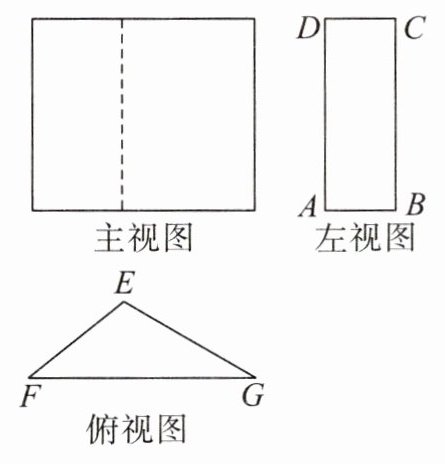 14. 某几何体的三视图如图所示,已知在$\triangle EFG$中,$FG=18cm$,$EG=12cm$,$∠EGF=30^{\circ }$,在矩形ABCD中,$AD=16cm$。