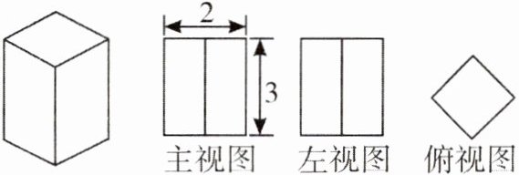 5. 一个几何体的三视图如图所示,若其俯视图为正方形,求这个几何体的全面积。