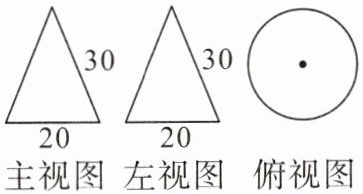 解: 圆锥的高为$\sqrt{30^2 - (\frac{20}{2})^2} = 20\sqrt{2}$,$\therefore V = \frac{1}{3} × 20\sqrt{2} × (\frac{20}{2})^2 \pi$=$
