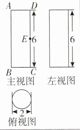 12. 【易错题】一个几何体的三视图如图所示,如果一只蚂蚁要从这个几何体上的点B出发,沿外表面爬到CD的中点E,最短路程为