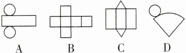 11. 【原创题】如图是某个几何体从不同方向看到的形状图(视图),下列平面图形中,可以由该几何体的表面展开的是 (