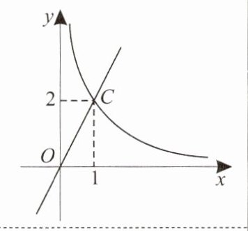 12. 在第一象限内,反比例函数$y=\frac{k}{x}$和正比例函数$y=mx$的图象如图所示,则不等式$\frac{k}{x}\leq mx$的解集为