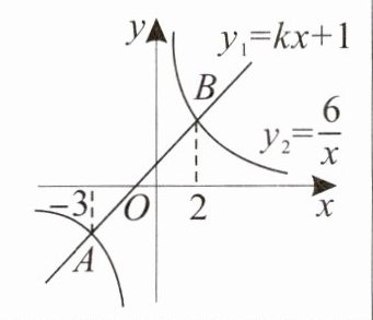 10. (2024·佛山期中改编)如图,在同一平面直角坐标系中,一次函数$y_1=kx+1$($k$是常数,且$k\neq0$)与反比例函数$y_2=\frac{6}{x}$的图象相交于$A(-3,-2)$,$B(2,m)$两点,则不等式$kx+1>\frac{6}{x}$的解集是(