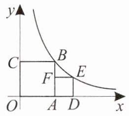 14. 如图,正方形$OABC$,$ADEF$的顶点$A$,$D$,$C$在坐标轴上,点$F$在$AB$上,点$B$,$E$在函数$y=\frac{1}{x}(x>0)$的图象上,则: