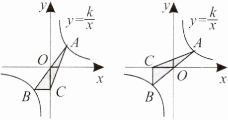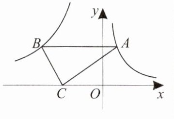 10. 如图,点$A$在双曲线$y_1=\frac{2}{x}(x>0)$上,点$B$在双曲线$y_2=\frac{k}{x}(x<0)$上,$AB// x$轴,$C$是$x$轴上一点,连接$AC$,$BC$。若$\triangle ABC$的面积是$6$,则$k$的值为(