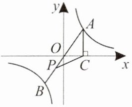 7. 如图,点$A$和点$B$都在反比例函数$y=\frac{4}{x}$的图象上,且线段$AB$过原点,过点$A$作$x$轴的垂线,垂足为$C$,点$P$是线段$OB$上的一个动点,连接$CP$。设$\triangle ACP$的面积为$S$,则下列说法正确的是(