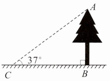 2. 如图,从地面的点C看树顶的仰角为37°,BC=20米,求树高AB.(参考数据:sin37°≈0.60,tan37°≈0.75)