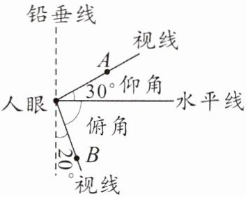 (2)低头看时,视线与水平线的夹角叫做俯角,图中人眼看点B的俯角为