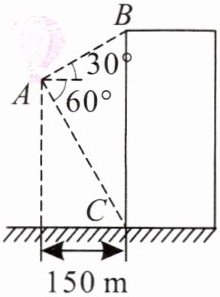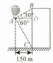 5. 如图,从热气球底部A处看一栋高楼顶部的仰角为30°,看这栋楼底部的俯角为60°,热气球底部A处与高楼的水平距离为150m,这栋高楼有多高?