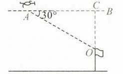 3. 数学兴趣小组利用无人机测量学校旗杆高度.如图,已知无人机的飞行高度为40米,当无人机与旗杆的水平距离是45米时,观测旗杆顶部的俯角为30°,求旗杆的高度.