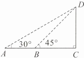 10. 如图,某数学兴趣小组为测量一座古塔的高度,在古塔左侧的点A处测得古塔顶端D的仰角为30°,然后向古塔底端C前进30米到达点B处,测得古塔顶端D的仰角为45°,且点A,B,C在同一水平直线上,求古塔CD的高度.