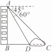 8. 如图,从楼顶A处看楼下荷塘C处的俯角为45°,看楼下荷塘D处的俯角为60°.已知楼高AB为30米,则荷塘的宽CD为